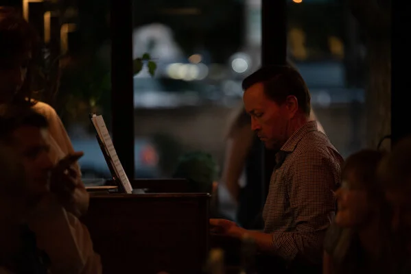 I drove past the Tuning Fork as I looked for parking. I didn’t know anything about the place before going in on the day of, but it was a lot cozier than the last venue. It’s a nice space that seats a couple dozen patrons, and to the right of the entrance is a small performance space backlit by natural light, enough to hold a band, provided that the drummer either has a very small set or a cajon. It’s definitely a lovely place to spend an evening for a drink, dinner (I recommend the Oh So Cheesy with a tomato bisque on the side), and some nice light music. For a photographer, on the other hand, it’s a tough space.