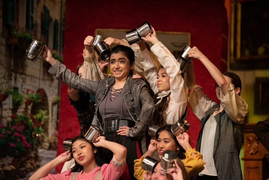 Providence High has what is known as a “thrust” stage. On a thrust, instead of the audience sitting directly in front of a stage, known as a “proscenium,” the stage “thrusts” forward, where the audience surrounds the stage on three sides. It makes for a more intimate type of performance and a unique style of blocking and choreographing. For photos, however, it can lead to a lot of moments where the blocking can prevent photos from being ideal.